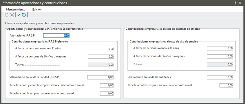 Se deberá informar el importe total de las aportaciones realizadas por todas las personas trabajadoras de la empresa a planes de previsión social preferentes.