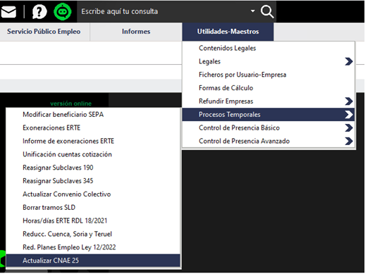 - Nuevo asistente de actualización del CNAE2025, que facilita la asignación del código a una o varias empresas en un único proceso.