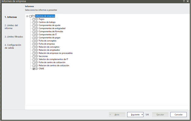 Para poder revisar el CNAE informado en la Empresa y/o Centro de cotización, podrás generar el nuevo informe CNAE en Informes de Empresa.