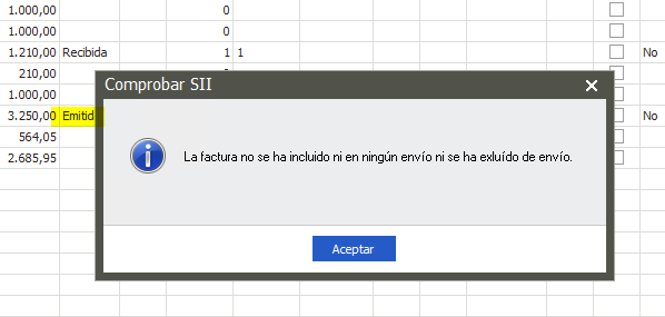 La opción Comprobar SII, únicamente esta disponible para aquellas empresas que están registradas y configuradas en el SII dentro de la aplicación.