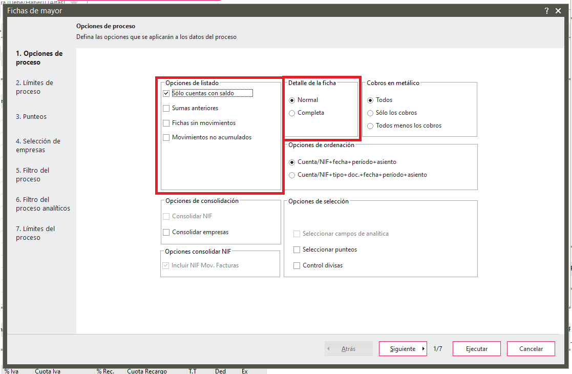 En esta versión se ha mejorado la Ficha de Mayor, una pantalla con múltiples opciones de configuración que permite personalizar la visualización de la información contable.